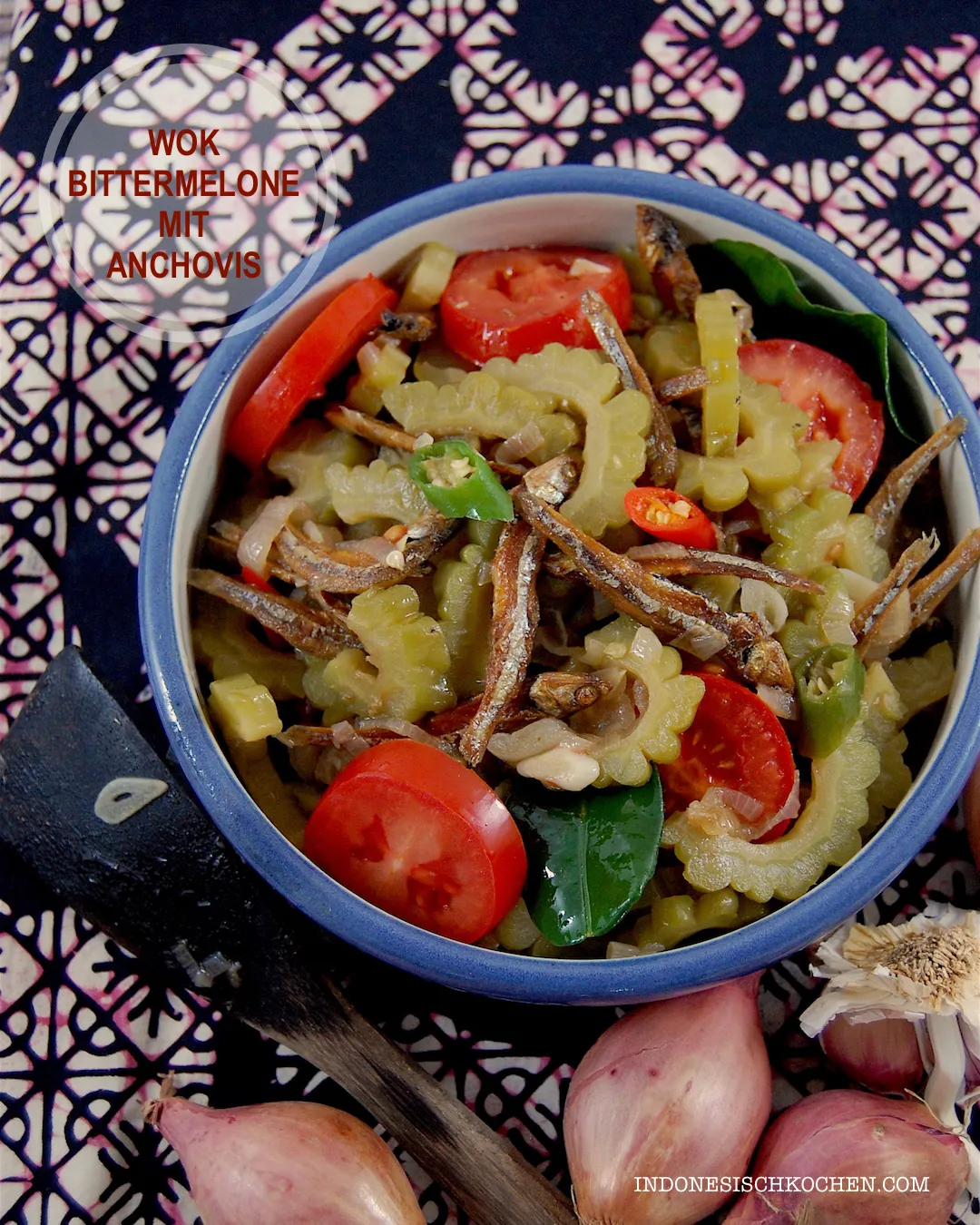 Rezept aus Bali, wok Bittermelone und Anchovis, ein Superfood aus Asien. Die Zubereitung ist schnell und kinderleicht.